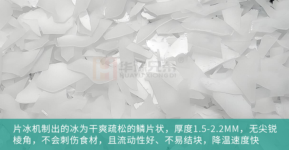 片冰机产出的冰为干爽疏松的鳞片状,厚度1.5-2.2mm,无尖锐棱角,不会刺伤食材,且流动性好、不易结块,降温速度快,能快速锁住食材新鲜度,适合超市大型冰台、水产区和鲜肉区,因其不易融化,故而补冰频次低,丰富和大型超市用冰需求。